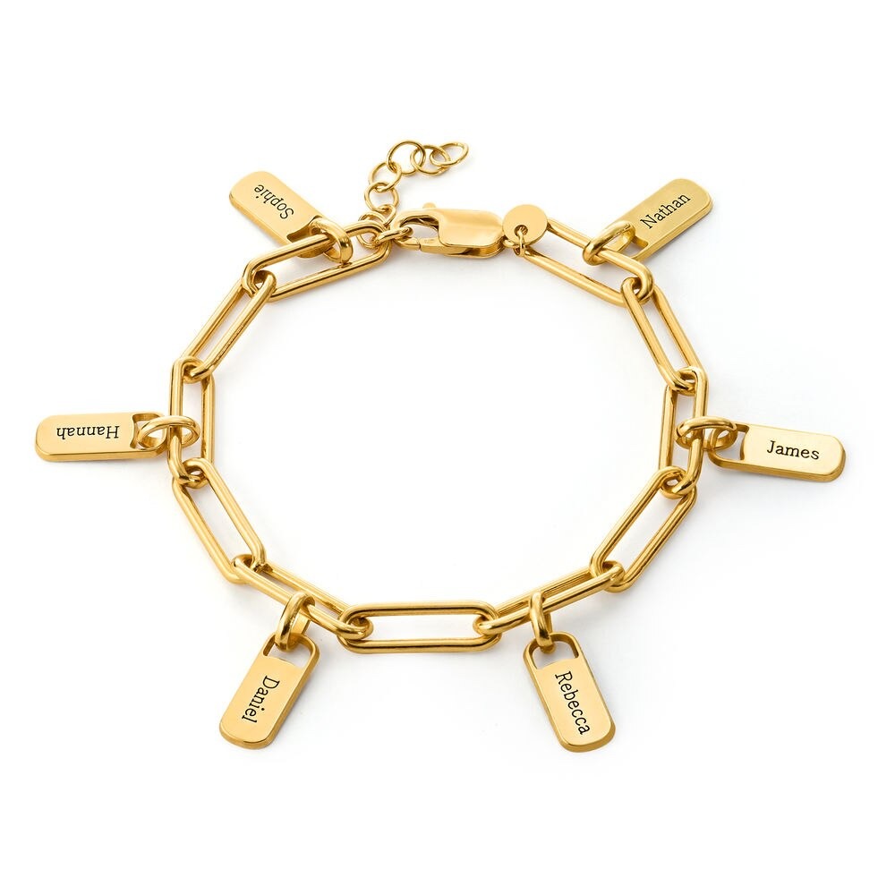 Bold yet refined, the Liora Custom Name Link Bracelet reimagines personal jewelry with a sleek, modern twist. Crafted with polished link chains and adorned with custom name charms, this bracelet turns sentiment into statement. Whether you’re honoring loved ones or celebrating your own identity, each charm is made just for you — no two pieces are ever the same.